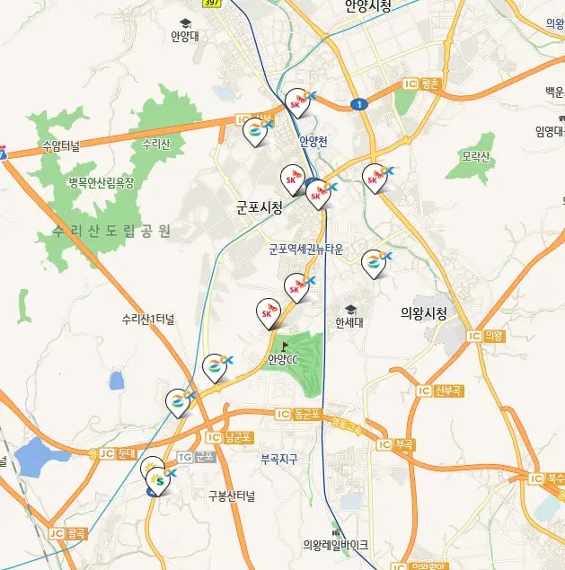 경기도 군포시에는 총 16개의 주유소가 있는데요. 24시 주유소는 아래에 나와 있는 3곳이 운영 중에 있습니다.