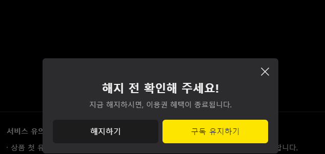 6. 해지하기: My 구독 화면에서 '이모티콘 플러스'를 찾아 '해지하기' 버튼을 클릭합니다. 해지 확인 후, 해지가 완료됩니다.